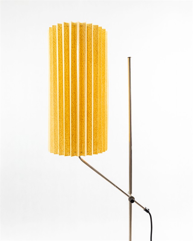 Období-Brusel Datování-70. léta Rozměr-v160, š45, prům 22 Materiál-kovové tělo, pergamen stínidlo Stav-restaurováno Poznámka-elegantní svítidlo