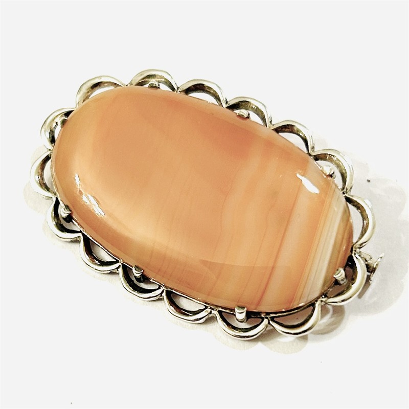 Stříbrná art-deco brož s achátem