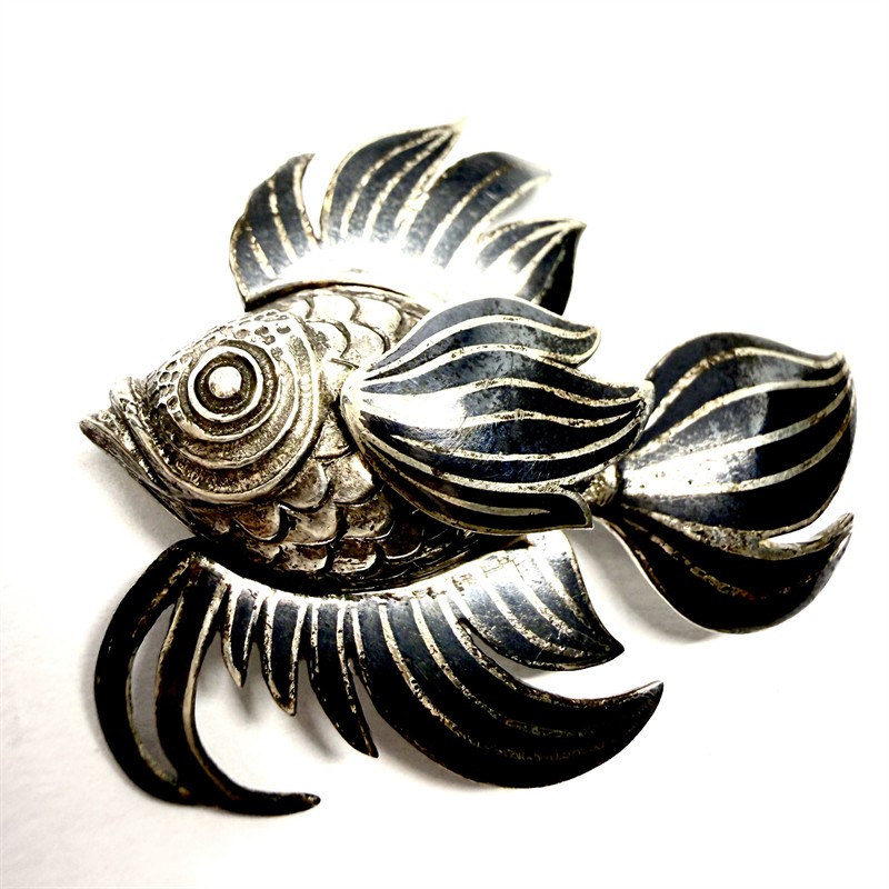 č. 181 824 Stříbrná brož - niello - ryba závojnatka