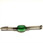 Jemná, decentní stříbrná brož z období první republiky. Šperk je osazen tmavě zeleným chalcedonem, který byl decentně dozdoben elegantně se třpytícími markazity. Sterlingové stříbro (925/1000), celková váha 2,23 g. Délka 5 cm. Perfektní stav.