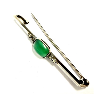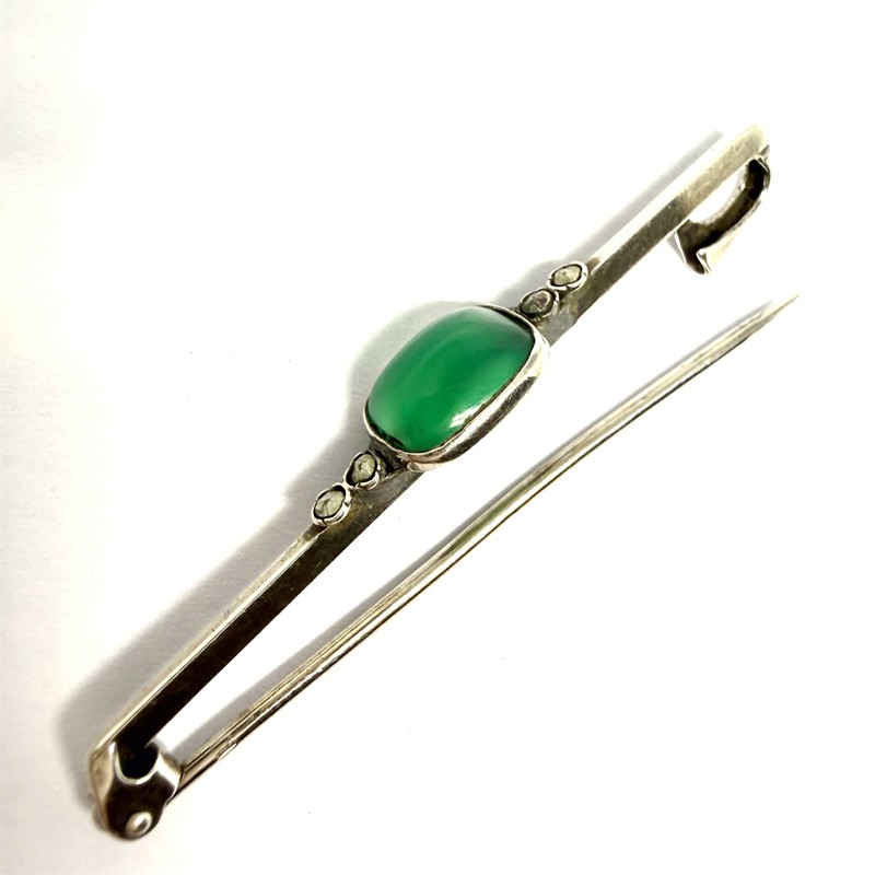 Stříbrná brož se zeleným chalcedonem