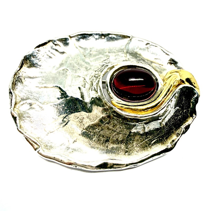Stříbrná brož zdobená ryzím zlatem a almandinem