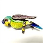 Originální, drobnější stříbrná brož, celoplošně zdobená barevnými smalty - papoušek. Brož byla vyrobena ze stříbra ryzosti 935/1000. Váha šperku 6,65 g. Rozměry 3,4 x 1,2 cm. Brož mimo smalty zdobí drobné, elegantní markazity. Velmi dobrý stav.
