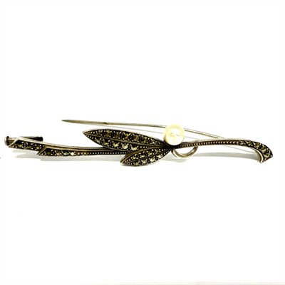Stříbrná secesní brož s perlou a markazity