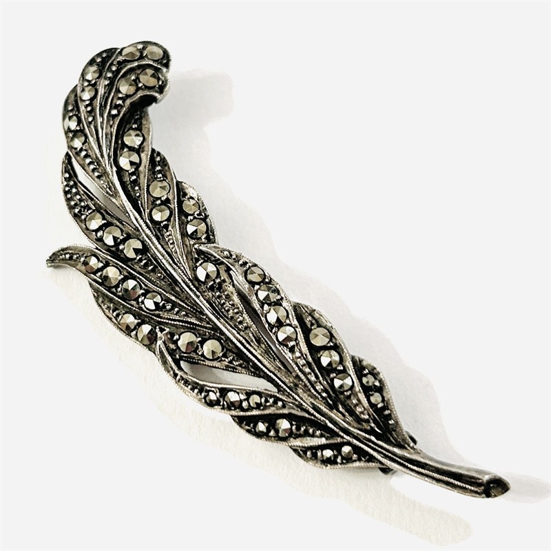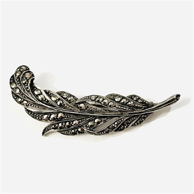 Stříbrná starožitná brož "peříčko" s markazity