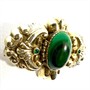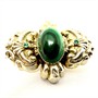 Dekorativní, velmi stará brož zdobená oválným malachitem. Šperk byl zhotoven na sklonku 19.století z decentně zlaceného stříbra ryzosti 800/1000. Je značen původním dobovým puncem -hlava chrta. Celková váha 13,12 g. Brož zdobí sytě zelený malachit s krásnou kresbou. Rozměry šperku cca 4 x 3 cm. Výborný stav.