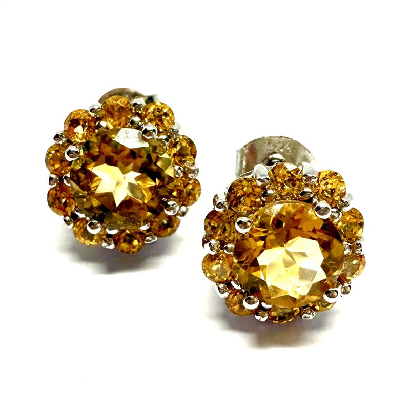 Půvabné stříbrné náušnice se zapínáním na puzetu. Náušnice zdobí citríny skládané do květu jenž má průměr cca 7 mm. Sterlingové stříbro (925/1000), celková váha 2,27 g. Profesionálně vyčištěno, perfektní stav.