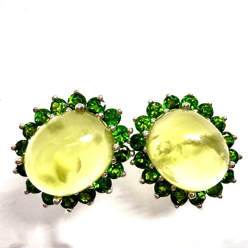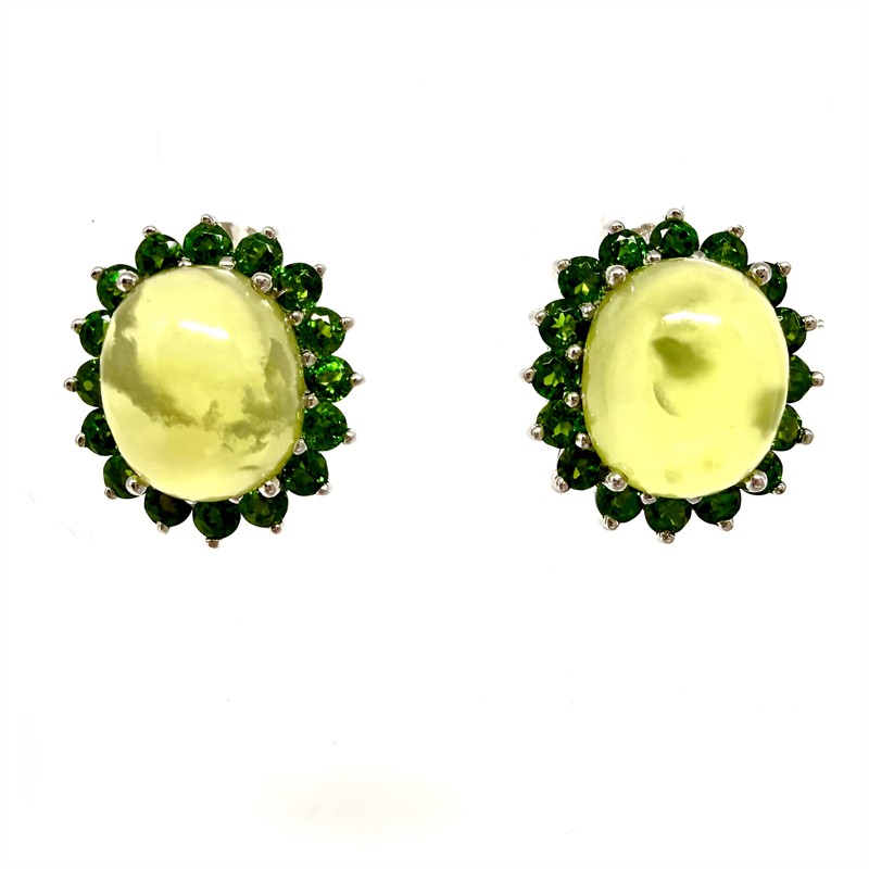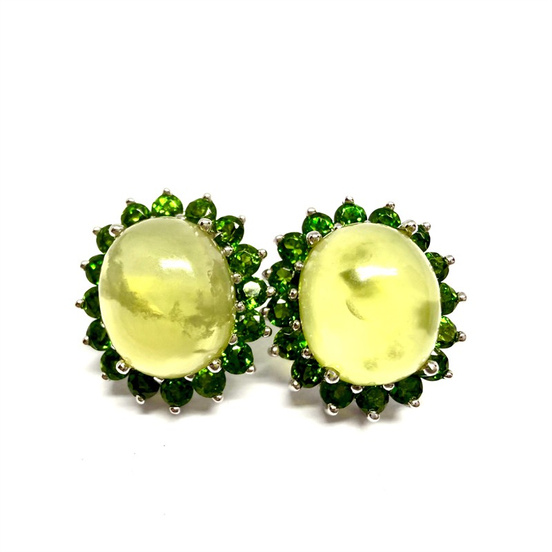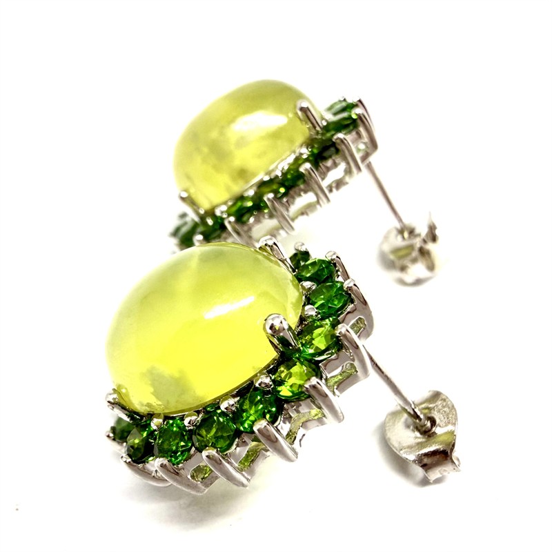 Stříbrné náušnice s prehnitem a chromdiopsidy