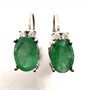 Elegantní, půvabné závěsné náušnice zhotovené ze sterlingového stříbra (925/1000). Náušnice zdobí velký smaragd přírodního původu, kontrastně dozdobený drobnými, bílými kamínky briliantového brusu se zářivou brilancí. Rozměry smaragdu cca 7 x 4 cm. Celková váha 2,09 g. Profesionálně vyčištěno zlatníkem. Perfektní stav.