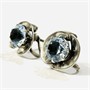 Elegantní, vkusné náušnice v bruselském stylu, spirálovitě tvarovaná hlavice ve středu s modrým kamenem kulatého brusu fasovaném v mnohokrapnové koruně. Kvalitní západoevropská či severoamerická práce z 60. let 20. století. Zhotoveno z nezlaceného stříbra o ryzosti 925/1000, zapínání z obecného kovu; nově opatřeno puncem S-61 (kozlík 2) a značka výrobce (?) "MAD" a další značení zezadu, nově označeno "METAL" a stornování na zapínání. Hmotnost 10,04 g, délka hlavice 19,5 mm, šířka 18 mm. Zapínání formou anglického šroubku v pořádku, celkově ve velmi zachovalém stavu.