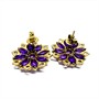 Půvabné náušnice ze zlaceného stříbra - květy. Náušnice zdobí sytě fialové ametysty seskládané do většího květu o průměru cca 2 cm. Zapínání na puzetu. Stříbro ryzosti 925/1000, celková váha 3,57g. Výborný stav.