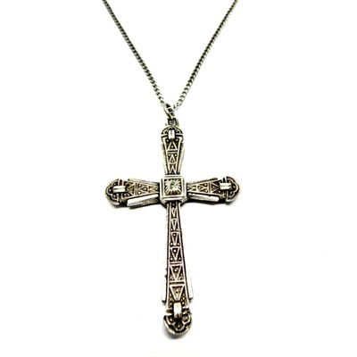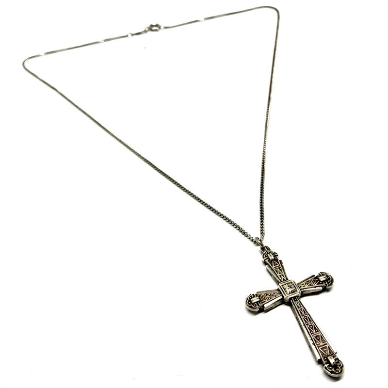 č. 182 102 Stříbrný Art deco náhrdelník - křížek a briliantem