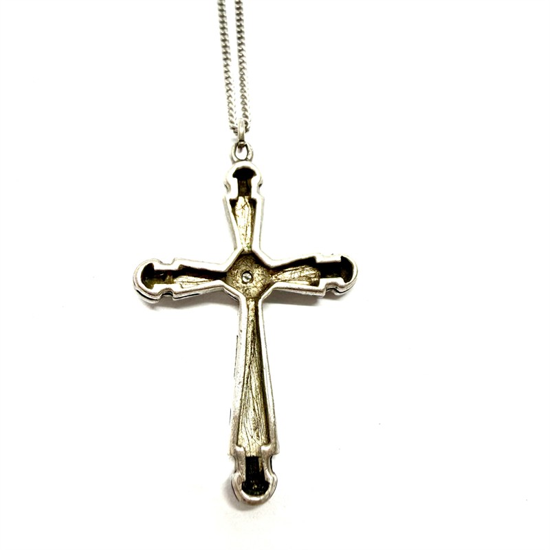 Stříbrný Art deco náhrdelník - křížek a briliantem
