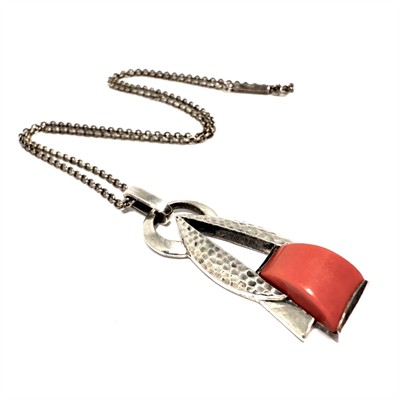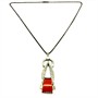Nadčasový stříbrný náhrdelník zhotovený v první polovině 20.století ve stylu Art deco. Šperk zdobí větší, odnímatelný závěs. Tomu vévodí oranžovo červený bakelit. Šperk byl vyroben ze stříbra ryzosti 935/1000 a jeho celková váha je 12,17 g. Délka řetízku 43 cm. Jedná se o původní Art deco šperk v perfektním stavu, nikoliv současnou napodobeninu.