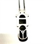 Elegantní, nadčasový, stříbrný náhrdelník zhotovený ve stylu Art deco. Šperk byl vyroben ze sterlingového stříbra (925/1000), o celkové váze 13,18 g. Náhrdelníku vévodí destička z černého onyxu, jež je kontrastně dozdobena drobnými elegantními markazity. Délka 40 cm. Perfektní stav.