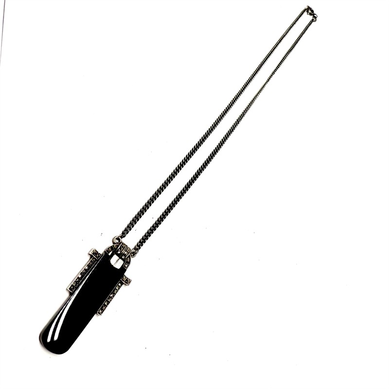 Stříbrný Art deco náhrdelník s onyxem a markazity