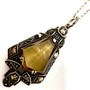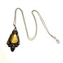 Elegantní stříbrný náhrdelník - řetízek s odnímatelným, půvabným závěsem zhotoveným počátkem 20.století ve stylu art deco. Šperku dominuje zlatavě hnědý kámen, kontrastně dozdobený markazity. Stříbro ryzosti 935/1000. Řetízek sterlingové stříbro (925/1000). Celková váha šperku 6,17 g. Délka řetízku 44 cm, rozměry závěsu 3,7 x 1,8 cm. Starý, autentický šperk ve výborném stavu.