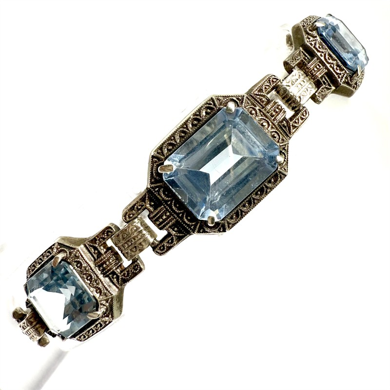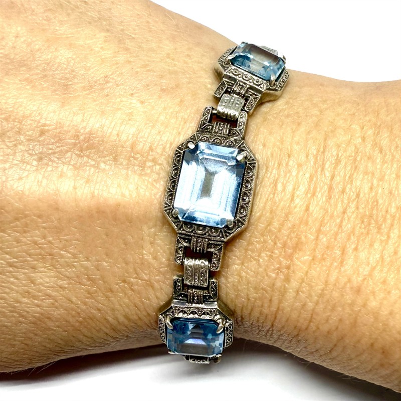 č. 181 282 Stříbrný Art deco náramek s modrými spinely