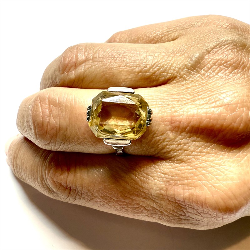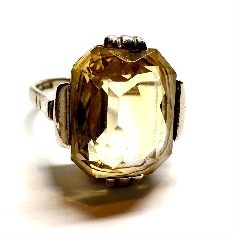 Stříbrný Art deco prsten s citrínem
