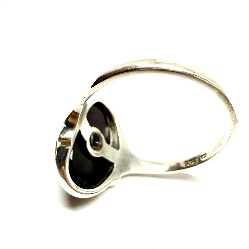č. 180 724 Stříbrný Art deco prsten s onyxem a diamantem
