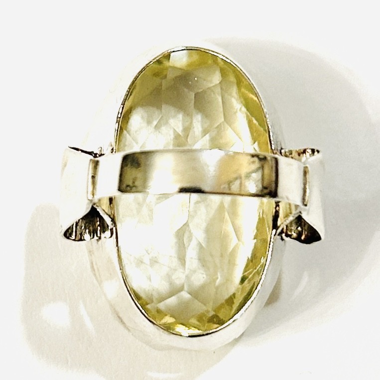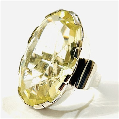 Výrazný, designem nadčasový prsten koktejlového typu osazený velkým uranovým sklem oválného brusu, fasováno zdvojenými krapnami, obloučkově pojatá ramena šíny. Patrně tuzemská zlatnická práce z 30. až 40. let 20. století. Zhotoveno z nezlaceného stříbra o ryzosti 900/1000; nově opatřeno puncem S-67 (zajíc 3) zevnitř šíny. Hmotnost 16,51 g, velikost 56, délka hlavice 30,5 mm. Kámen má odřené hrany, kámen lehce uvolněný (bezpečné pro nošení), celkově v dobrém stavu, odborně vyčištěno a vyleštěno zlatníkem.
