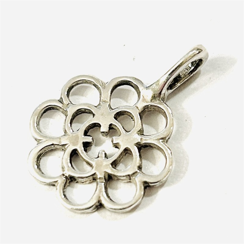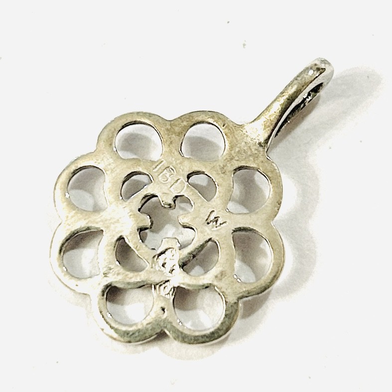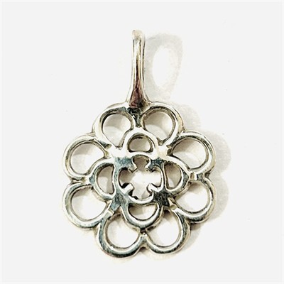 Decentní, minimalistický přívěšek ve tvaru stylizovaně abstrahovaného květu. Autorský šperk významné švédské šperkařky Ingy-Britt "Ibe" Dahlquist ze 70. let 20. století. Sběratelsky zajímavé. Zhotoveno z nezlaceného stříbra o ryzosti 925/1000; švédský punc (3 koruny) s písmenem "S" (silver) a "W" (značící vadstenský puncovní úřad) a autorská značka "IBD" zezadu. Hmotnost 2,03 g, celková délka 25 mm, šířka 18 mm. Ve velmi zachovalém stavu, odborně vyčištěno a vyleštěno zlatníkem.