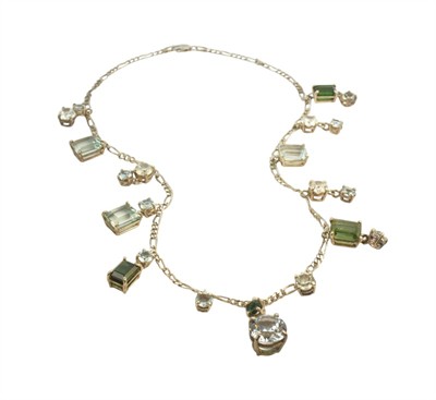 Stříbrný náhrdelník s akvamaríny, turmalíny a topazy