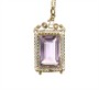 Stříbrný secesní náhrdelník osazený velkým ametystem, stříbro ryzost 900/1000, hmotnost 8,17 g. Rozměr závěsu 3,5 x 1,9 cm. Délka řetízku 50 cm.