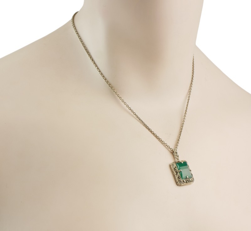 Stříbrný náhrdelník s chryzoprasem a markazity