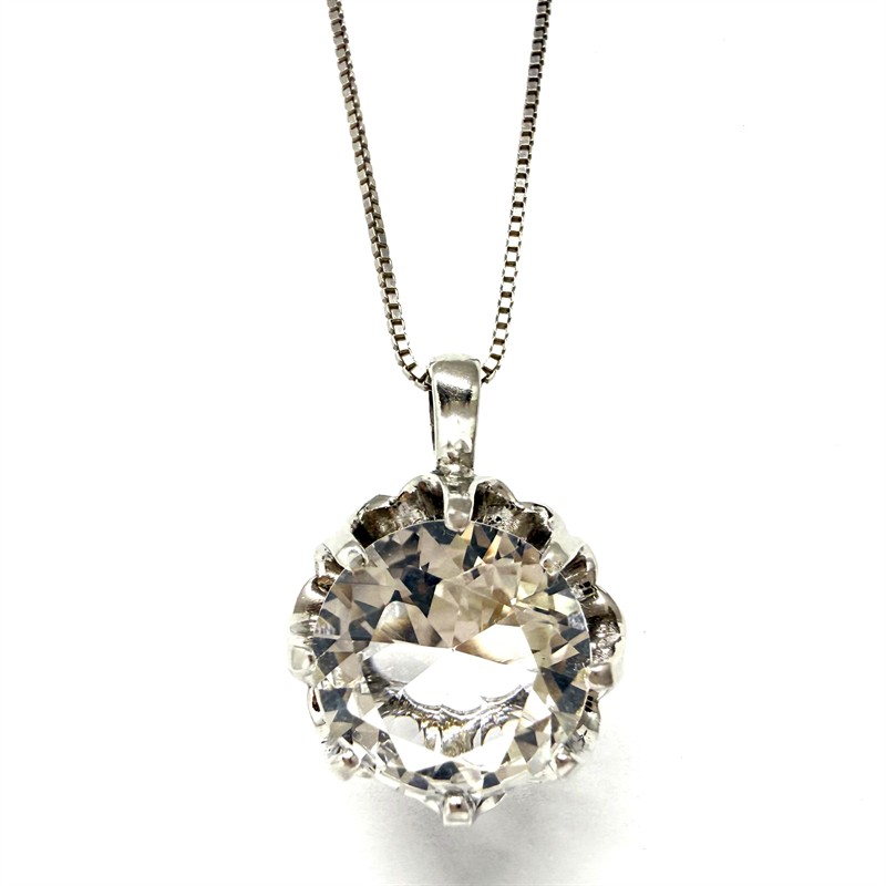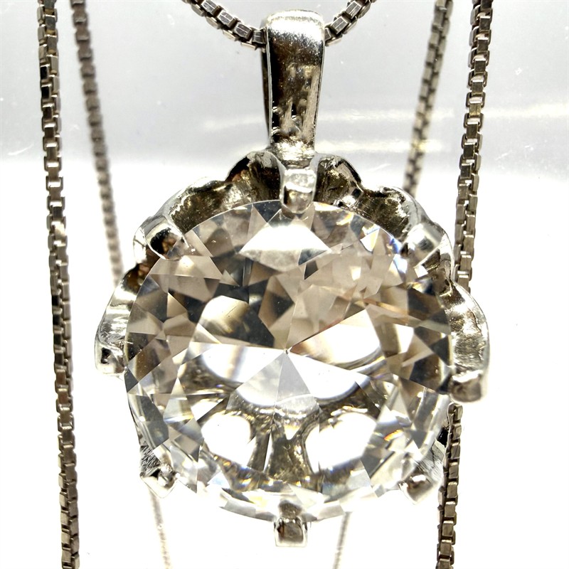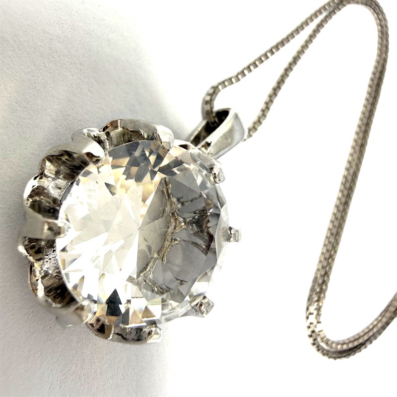 Nadčasový, stříbrný náhrdelník s odnímatelným závěsem osazeným horským křišťálem. Šperk byl zhotoven ze sterlingového stříbra (925/1000), o celkové váze 8,95g . Délka řetízku 42 cm, závěs cca 2,5 x 1,7 cm. Perfektní stav.