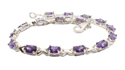 Stříbrný náramek s ametysty. Stříbro 925/1000. Přírodní ametysty, celková váha 6,4 ct. Váha náramku: 9,44 g. Délka náramku: 19 cm.