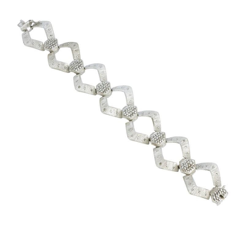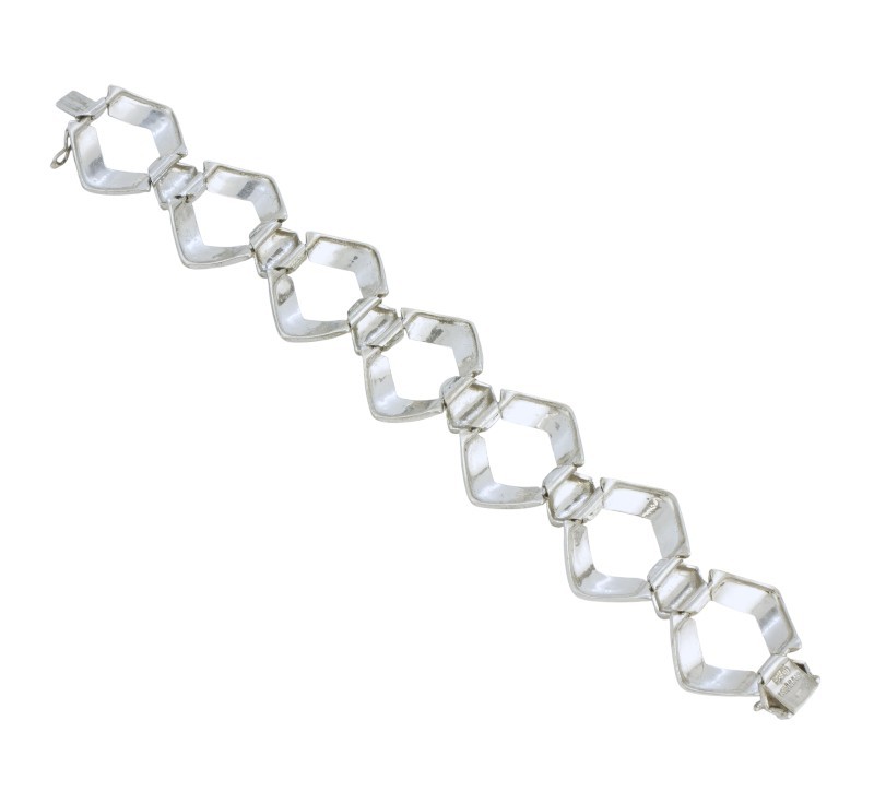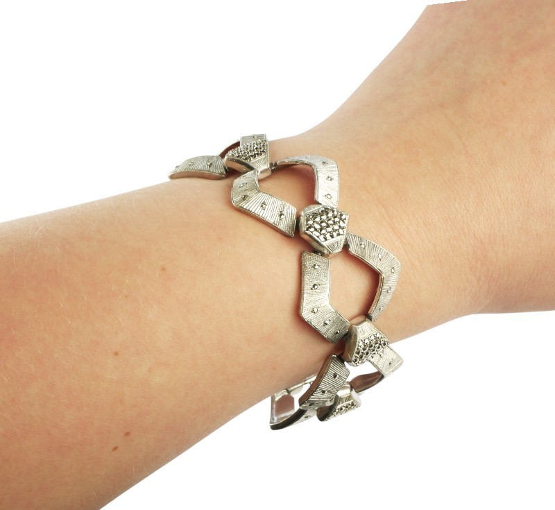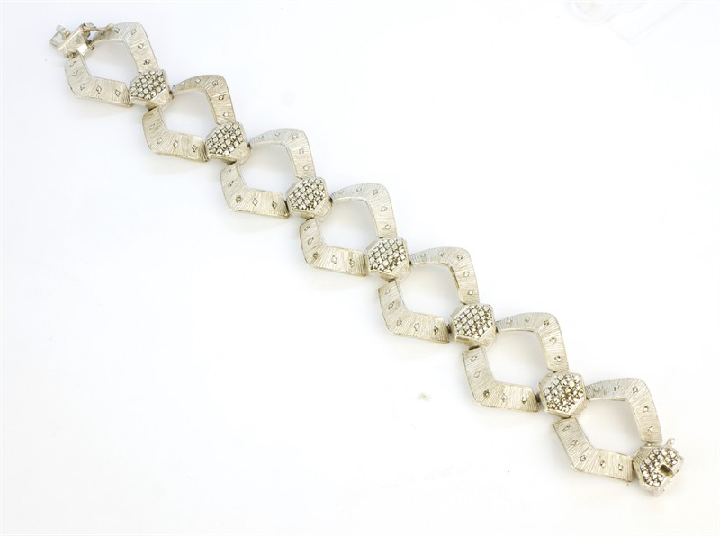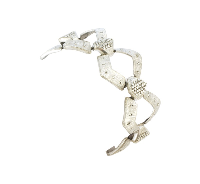 Náramek vyrobený ze stříbra ryzosti 925/1000 zdobený markazity. Z dílny věhlasného šperkaře Theodora Fahrnera. Délka 19,2 cm. Šířka 2,6 cm. Celková hmotnost 37,00 g.