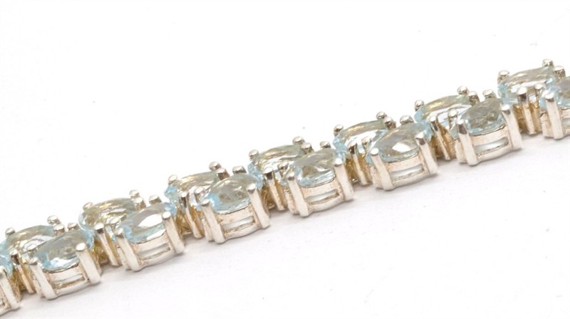 Stříbrný náramek s topazy. Stříbro 925/1000. Přírodní topazy, celková váha 25 ct. Váha náramku: 20,71 g. Délka náramku: 19,5 cm.