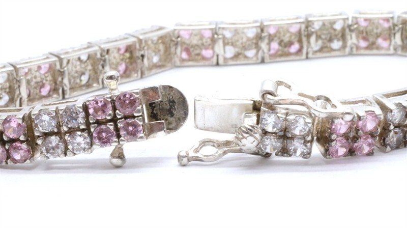 Stříbrný náramek se zirkony. Stříbro 925/1000. Kubické zirkony. Váha náramku: 22,42 g. Délka náramku: 19,5 cm.