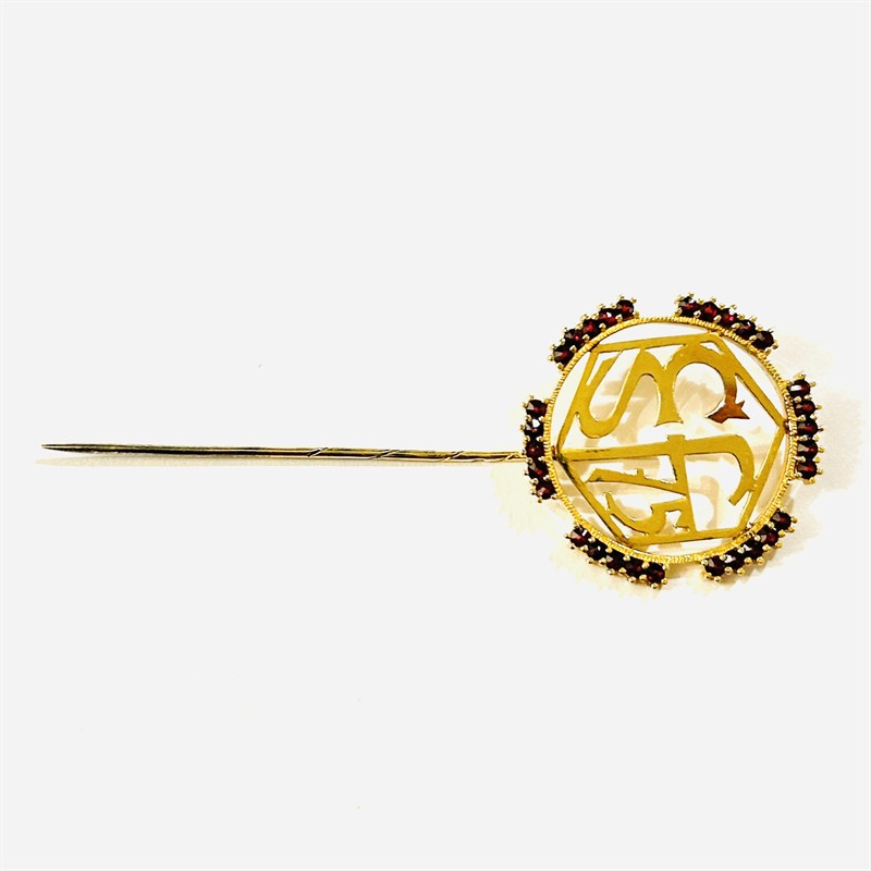 Velká, zřídka vídaná jehlice, jež slouží i jako odznak, kulatá hlavice s prořezávanou písmennou zkratkou "ČSF 75", rámeček přerušovaně osázen českými granáty kulatého hvězdicového brusu, fasováno zrnkovou technikou. Udíleno předním filmovým osobnostem a zasloužilým pracovníkům kinematografie k 75. výročí československého filmu v roce 1974, odznak prováděn i v podobě přívěšku. Originální design, precizní granátnická práce DUV Granát v Turnově z roku 1973. Sběratelsky zajímavé. Zhotoveno ze zlaceného stříbra o ryzosti 900/1000; punc S-67 (zajíc 3), ryzostní číslo se značkou výrobce "G7" na jehle. Hmotnost 4,40 g, celková délka 76 mm, šířka 29 mm. Ve velmi zachovalém stavu, odborně vyčištěno a vyleštěno zlatníkem.