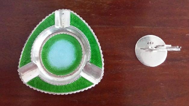 Stříbrný popelník s kominíčkem, art deco