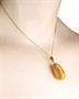 Minimalistický náhrdelník z pozlaceného stříbra ryzosti 900/1000 zdobený světle hnědým achátem. Délka řetízku 48 cm. Celková hmotnost 12,76 g.