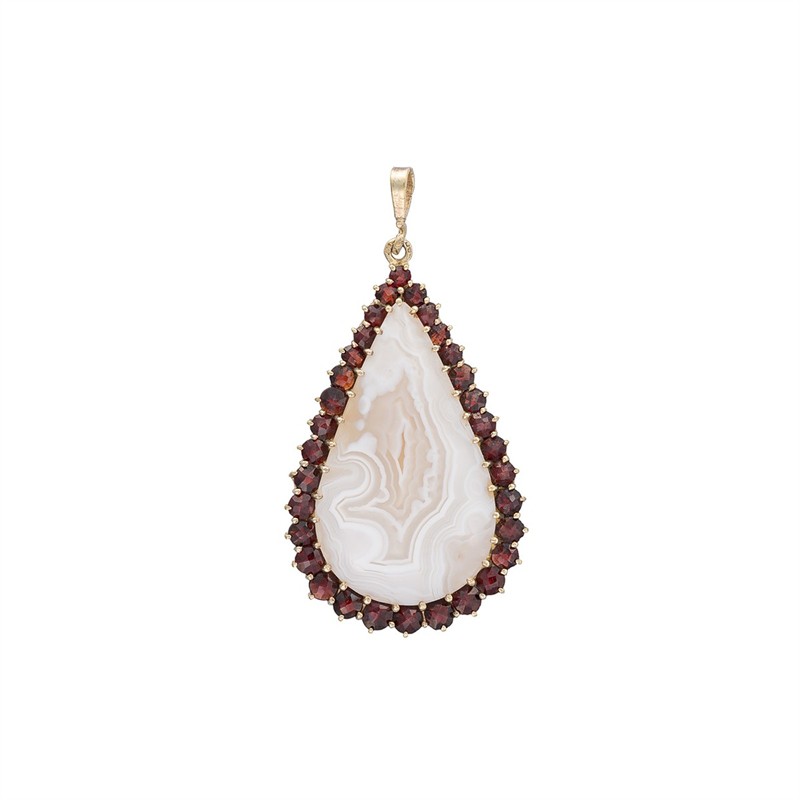 Materiál: stříbro o ryzosti 800/1000 Hmotnost: 6,8 g Rozměry: výška s ouškem 5 cm, šířka 2,5 cm Drahokamy: - přírodní achát - české granáty Stav: výborný Původ: zlatnická práce, opatřená platným puncem Puncovního úřadu České republiky Další fotografie tohoto šperku Vám rádi zašleme na vyžádání. Pro vaše maximální pohodlí nabízíme kompletní zlatnický servis: úpravy velikosti, odborné opravy, rhodiování, výměny kamenů, profesionální čištění, leštění i znalecké odhady. Vše přizpůsobíme vašim přáním.