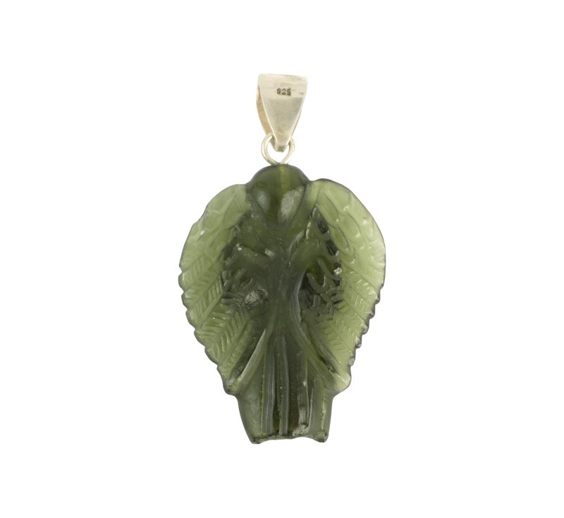 Stříbrný přívěšek s vltavínovou glyptikou "anděl"