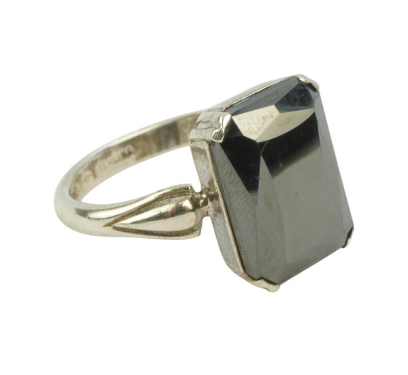 Elegantní jednoduchý prsten ze stříbra ryzosti 925/1000 s hematitem. Velikost prstenu je 58. Celková hmotnost 3,88 g.