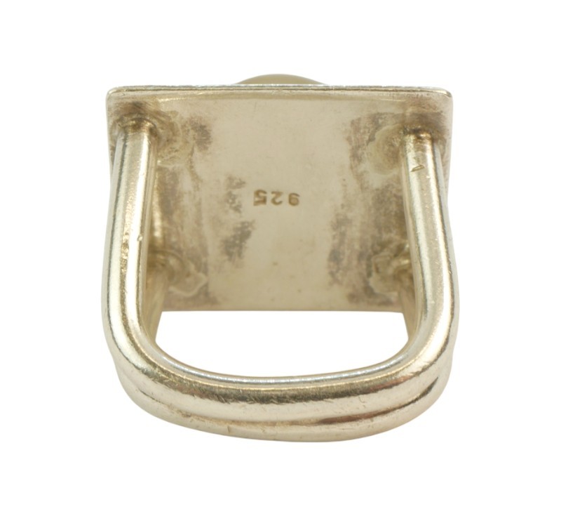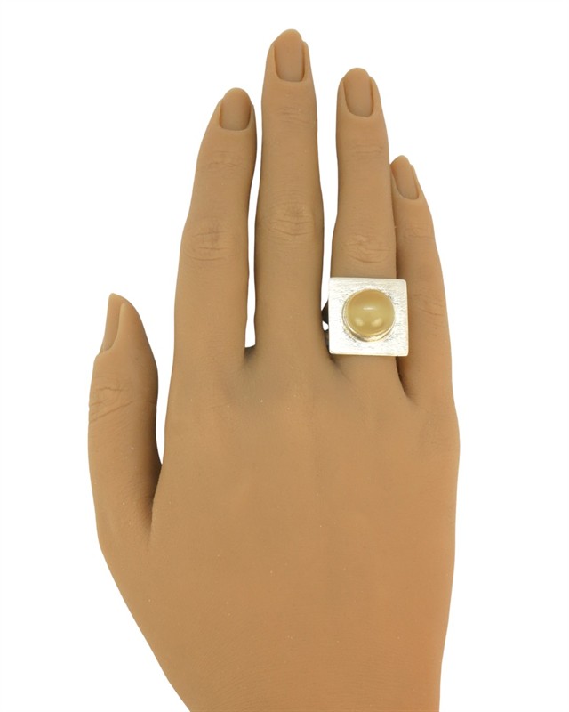 Výrazný designový prsten ze stříbra ryzosti 925/1000 s kočičím okem který vytváří lesklý optický efekt. Velikost prstenu je 48. Celková hmotnost 10,08 g