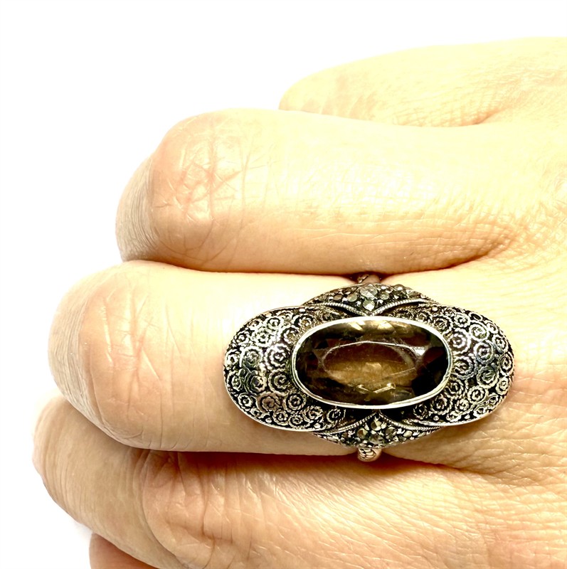 Stříbrný prsten s kouřovým topazem - Theodor Fahrner