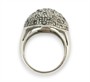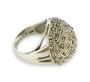 Výrazný stříbrný prsten jehoš půlkulatá hlava je sytě zdobena zářícími markazity, stříbro ryzosti 925/000, hmotnost prstenu 8,1 g, velikost 53.