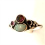 Půvabný, jemný prsten zdobený drahými kameny. Šperk byl zhotoven ze sterlingového stříbra 925/1000 o celkové váze 2,09. Šperk zdobí opál modrozeleného odstínu a tři almandiny. Velikost 53.