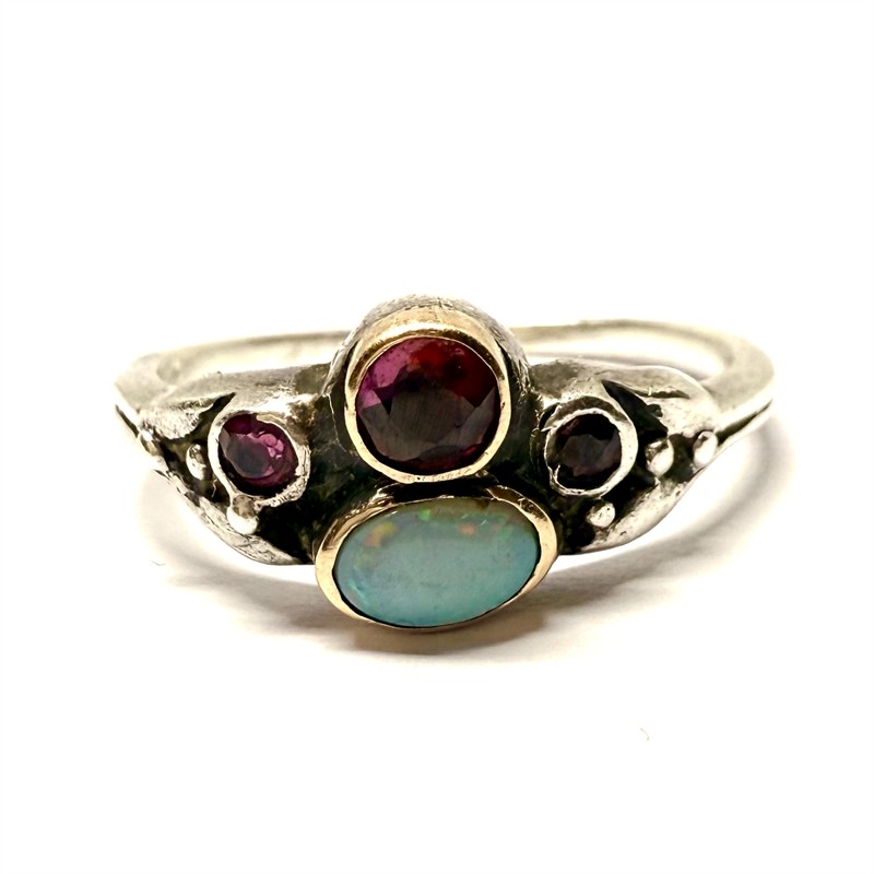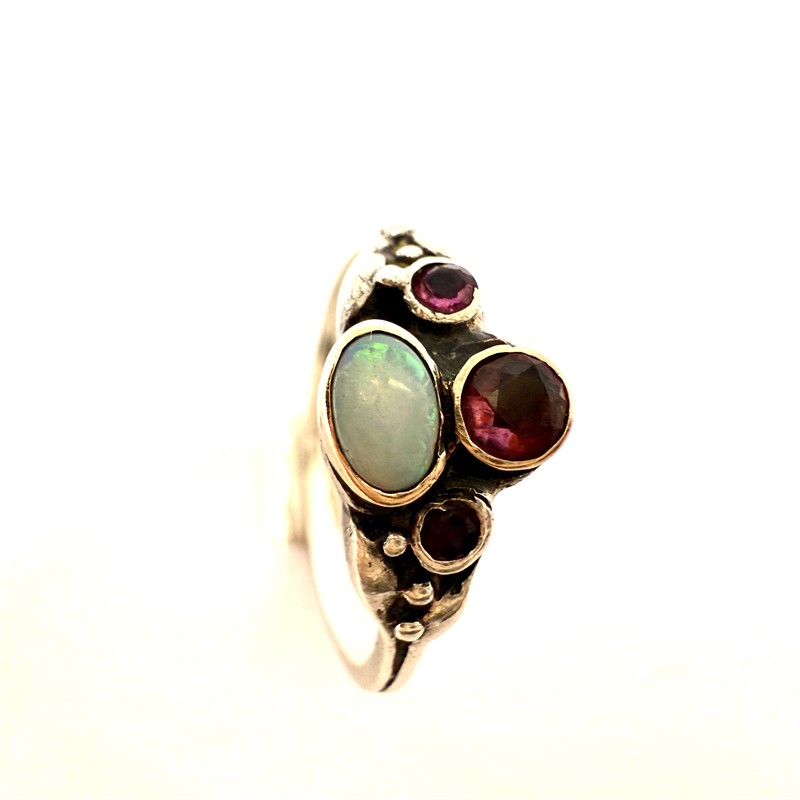 č. 181 122 Stříbrný prsten s opálem a almandiny