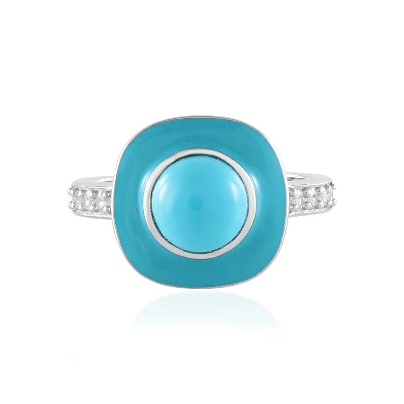 Stříbrný prsten s tyrkysem+smalt Rozměry - 24x20 mm Kov-Stříbro 925 Hmotnost -2,23 g Kámen-Tyrkys(kabošon) Hmotnost v karátech-1,22 karátu Velikost-7 mm Druhý kámen-zirkon(kulatý řez) Hmotnost v karátech-0,25 karátu Velikost-1,8 mm Naleziště -Kambodža