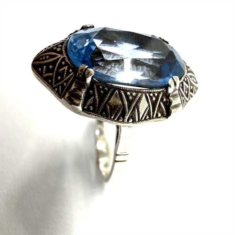 Stříbrný prvorepublikový prsten s modrým spinelem