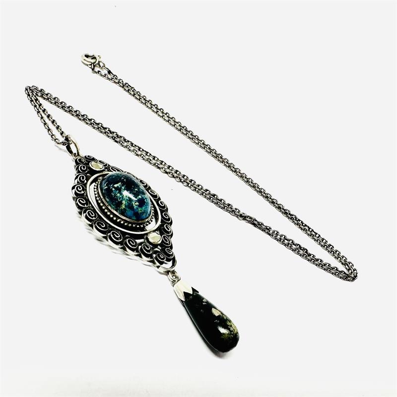 č. 172 258 Stříbrný secesní náhrdelník s ověsem