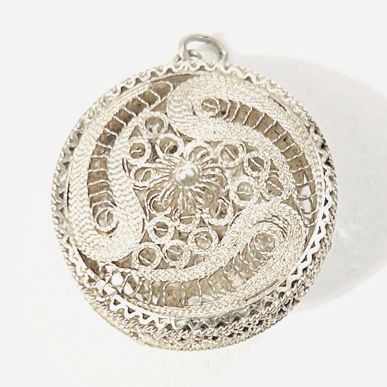 Stříbrný starožitný filigránový přívěšek/medailon