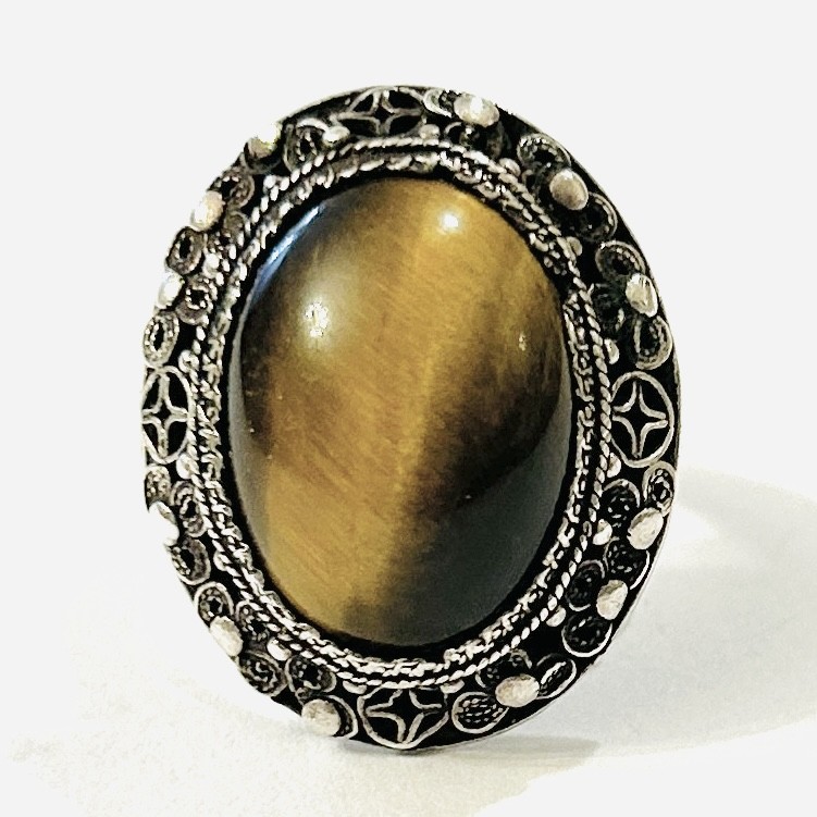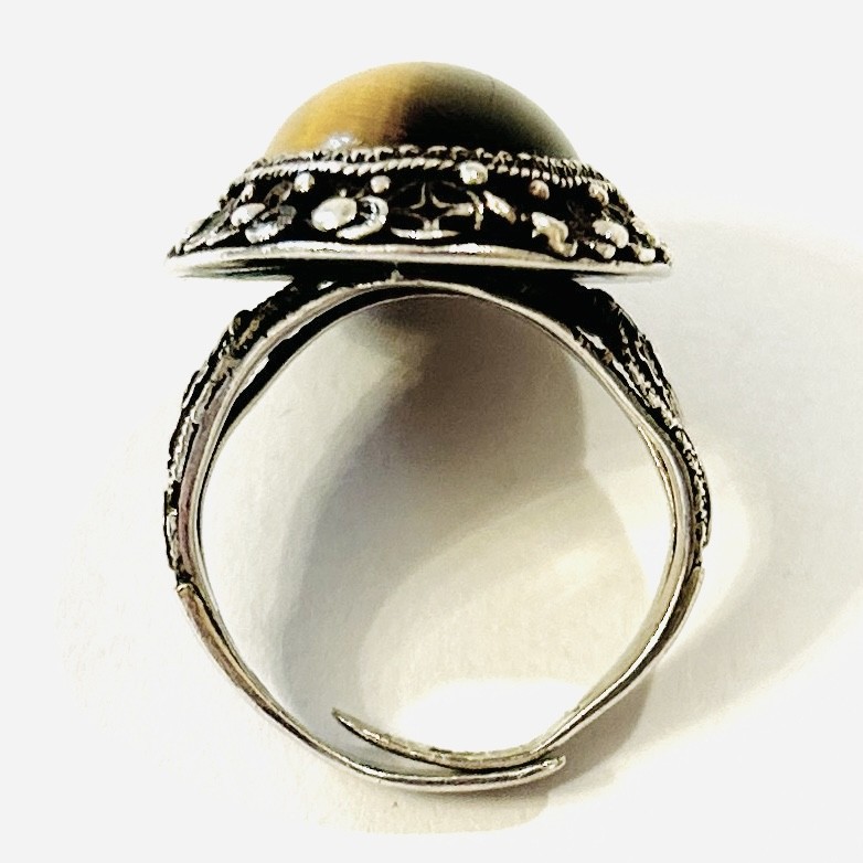 Stříbrný starožitný filigránový prsten s tygřím okem